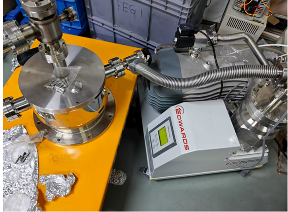 1、超瞬态透射电镜进展:利用氦质谱检漏仪完成对探测光引入港的真空检漏工作,确保安装后电子枪能保持超高真空。