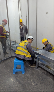 1、线站大厅屋面防水层施工完成,开展双曲复合铝板安装。