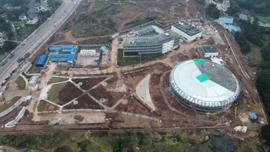 1、线站大厅开展外幕墙装饰收尾,园区进行市政管线埋设、地形整理和苗木栽植。