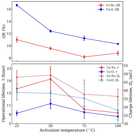 3、超瞬态低能电镜进展①:完成GaAs光阴极Cs-Te激活的理论和实验研究,研究表明由于Te元素与Ga、As、Cs等原子间较弱的相互作用,使得Cs-Te激活相较于传统的Cs-O激活具有更长的光阴极工作寿命。